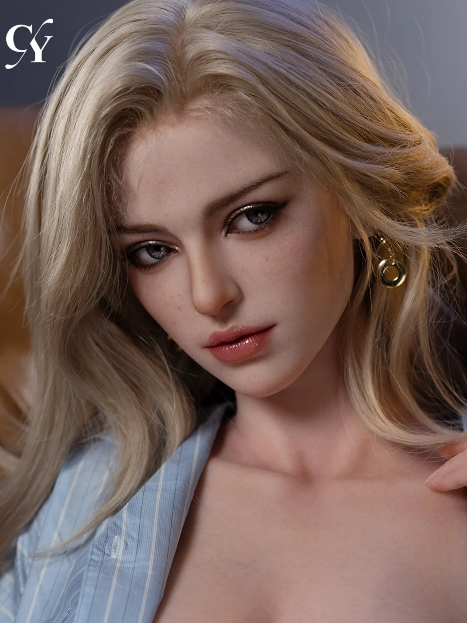 Even beneath a loose, pale blue striped shirt, Isabella’s alluring figure refuses to be hidden. Standing at 168 cm, her F-cup bust and 93 cm hips form an eye-catching hourglass silhouette, contrasted by a mere 54 cm waist. Her tousled, golden short hair frames her blushing face, and the relaxed posture she holds only intensifies the tension between innocence and seduction. There’s a quiet pull in her presence—subtle, magnetic—urging you to reach out, explore, and ultimately surrender to her spell.
