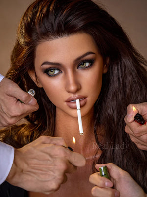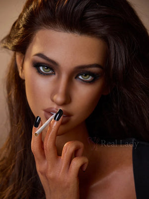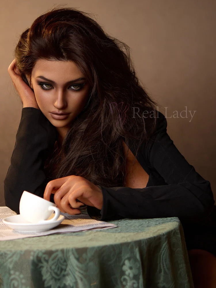 Lena is a super realistic, life-sized sex doll, meticulously made up and stylishly dressed, leisurely sipping coffee in a café. From a distance, she looks just like a real person, with a captivating and charming demeanor that compels you to take a second look. You'll even want to get closer to see her every move, as if she might smile at you at any moment.